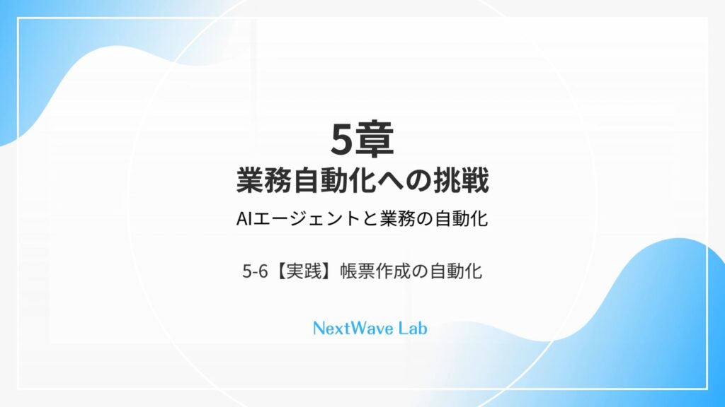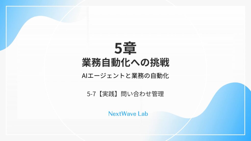 (未ログイン)5-1:自動化の概念 ▶︎ 動画を見る (未ログイン)5-2:【GAS】コード読解 ▶︎ 動画を見る (未ログイン)5-3:【GAS】コード生成 ▶︎ 動画を見る (未ログイン)5-4:【実践】Gmail自動処理 ▶︎ 動画を見る (未ログイン)5-5:【実践】日報の自動生成 ▶︎ 動画を見る (未ログイン)5-6:【実践】帳票作成の自動化 ▶︎ 動画を見る (未ログイン)5-7:【実践】問い合わせ管理 ▶︎ 動画を見る (未ログイン)5-8:複雑なフロー ▶︎ 動画を見る (未ログイン)5-9:AIエージェント ▶︎ 動画を見る
